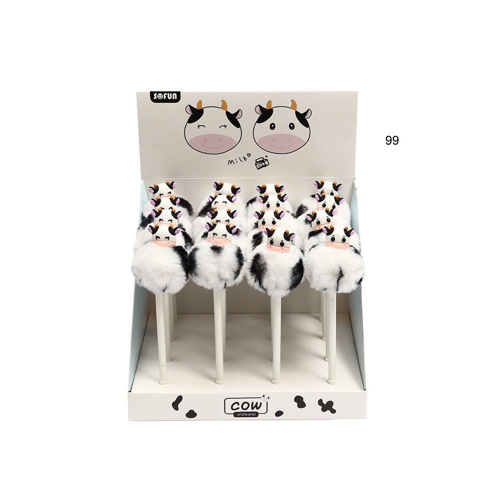 Dětské gelové pero s uzávěrem a nápaditým motivem krávy. Tělo postavičky je pokryto hebkým syntetickým vláknem. Gelové pero s jemným hrotem o šířce 0,5 mm pro velmi přesné psaní nabízíme v barevném mixu po 16 kusech.