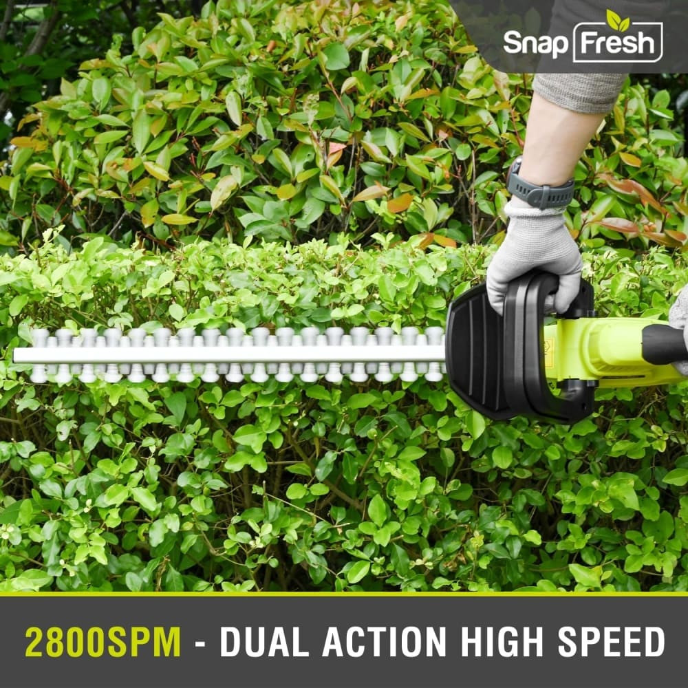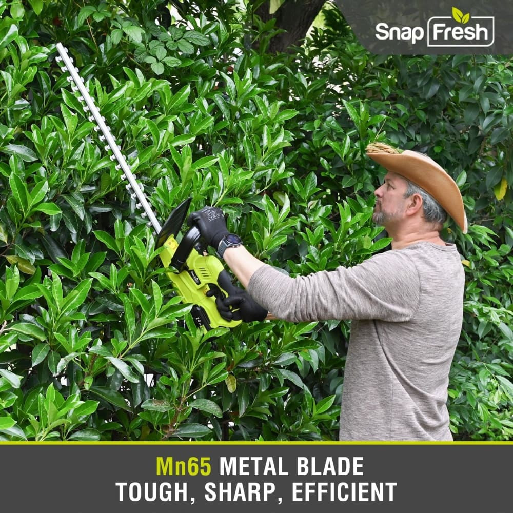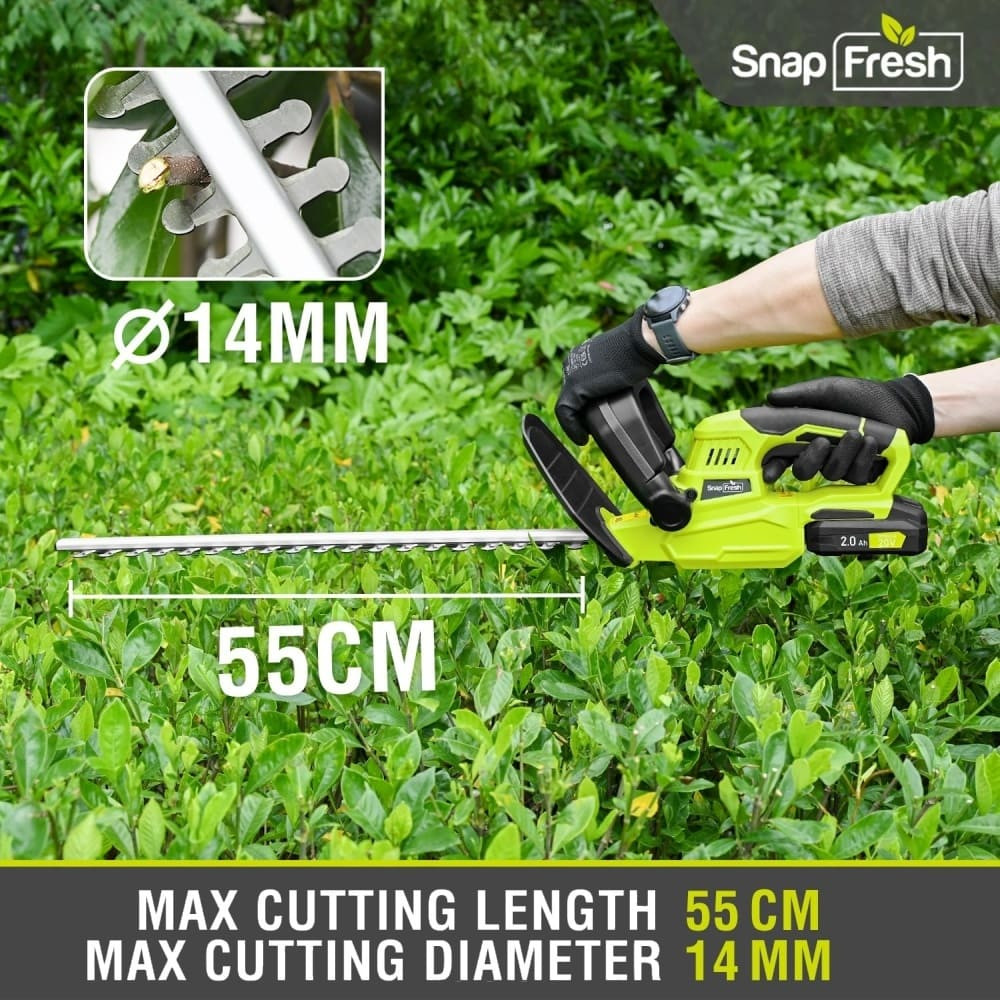 Díky výkonnému motoru napájenému 20V akumulátorem a dvojitým čepelím s rychlostí 2 800 kmitů za minutu zvládnou čistě a plynule zastřihnout i hustší porosty. Odolná ocel Mn65 zajišťuje dlouhou životnost a ostrost čepelí. Nůžky jsou vybaveny obousměrnými noži, které posouvají možnosti stříhání na vyšší úroveň. Vylepšená 22" čepel si snadno poradí s větvemi do průměru 14 mm.