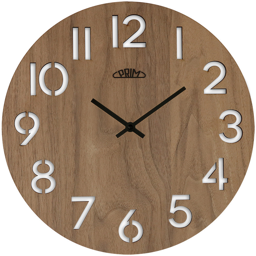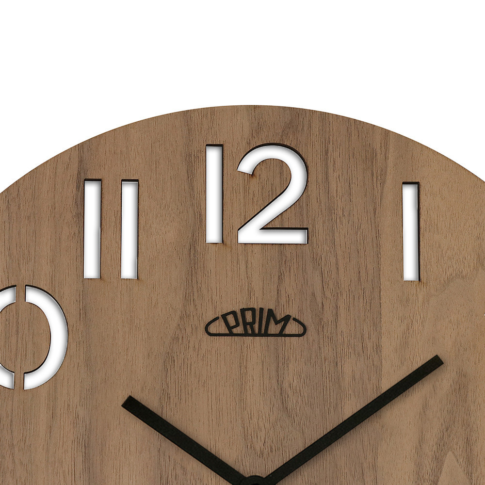 Nástěnné dřevěné hodiny PRIM Authentic Veneer jsou jednoduché hodiny zpracované z kvalitní dřevěné dýhy. Tloušťka dýhy je 4 mm. Barevné varianty 53 a 54 jsou doplněny ručkami také z tohoto přírodního materiálu. U hodin jsou hlavním výrazným prvkem vyražené číslice. Jsou vybaveny quartz strojkem s plynulým chodem. Hodiny vyrobeny v ČR.