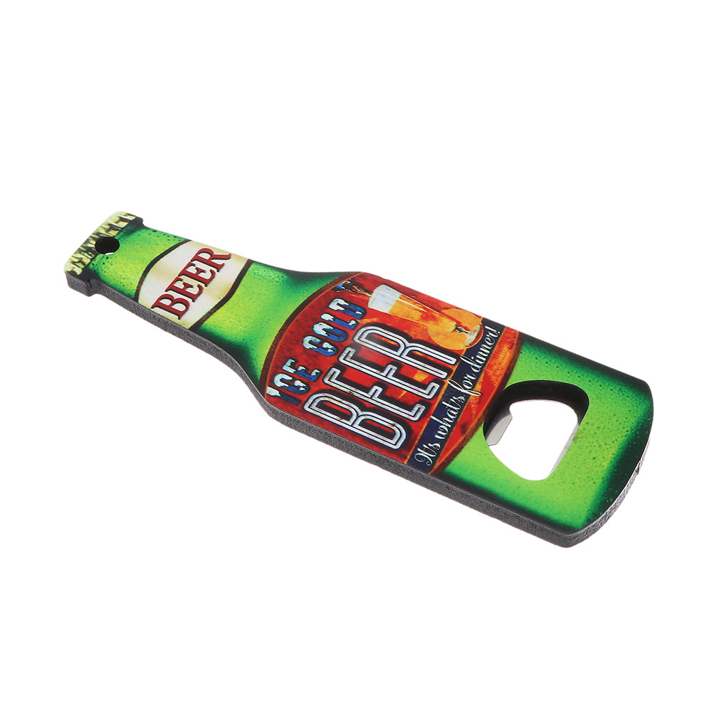 Dřevěný otvírák ve tvaru pivní láhve, vyrobený z MDF desky. Při výrobě bylo myšleno na to, aby byl otvírák neustále po ruce, kdykoliv jej bude potřeba. Z tohoto důvodu je horní část otvíráku vybavena dírkou na zavěšení a zadní strana opatřena magnetkou pro připnutí na ledničku nebo jinou kovovou plochu.