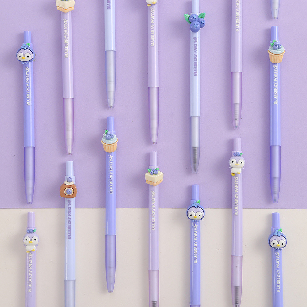 Dětské gelové pero ve fialových odstínech s originálními motivy tučňáků, borůvek a nespočtem druhů dezertů. Jemný hrot o šířce 0,5 mm zaručí velmi přesné a plynulé psaní. Pero prodáváme v barevném mixu po 36 ks.