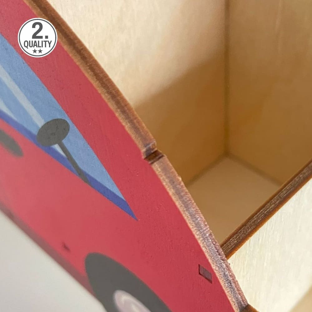 II. jakost - drobné vady dřeva. Dětský dřevěný stojánek na psací potřeby ve tvaru osobního automobilu. Stojánek se třemi přihrádkami nabízí dostatečný prostor pro uložení pastelek, fix a dalších psacích pomůcek. Navrženo a vyrobeno v České republice.