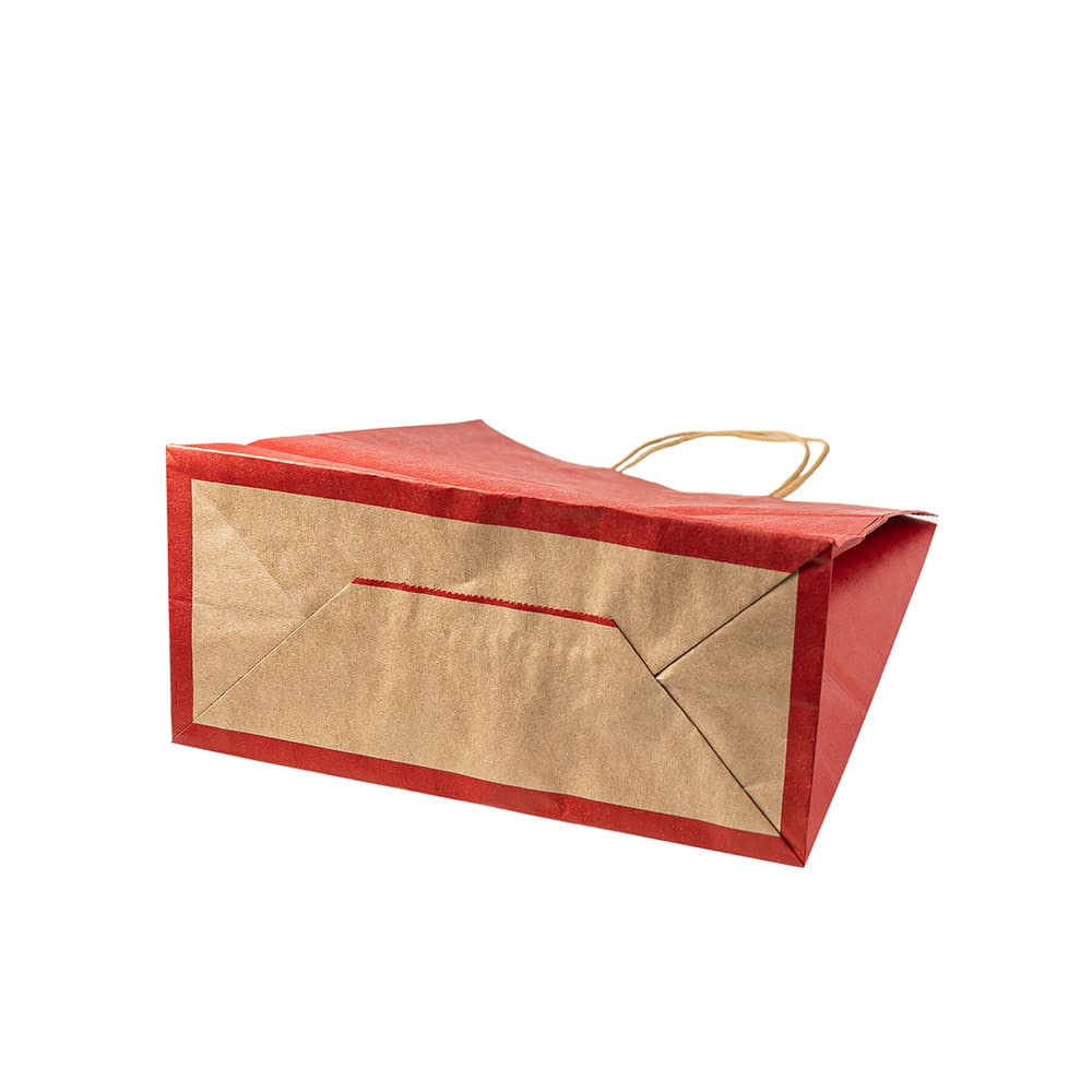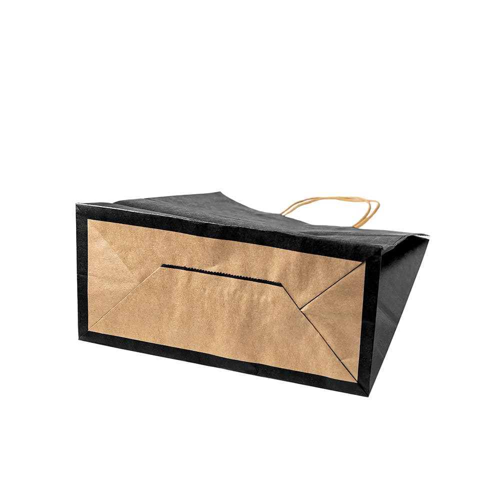 Ekologická papírová taška ve velké velikosti L vhodná pro restaurace, jídelny, kavárny, cukrárny a další místa, které nabízí své výrobky tzv. přes ulici. Taška je vyrobena z kraftového papíru.