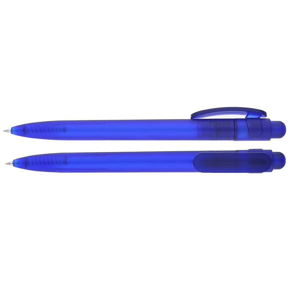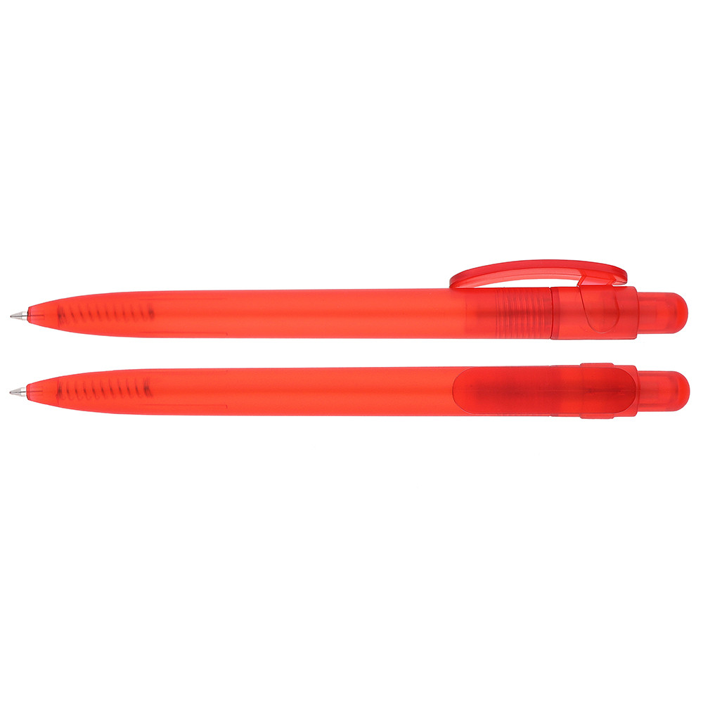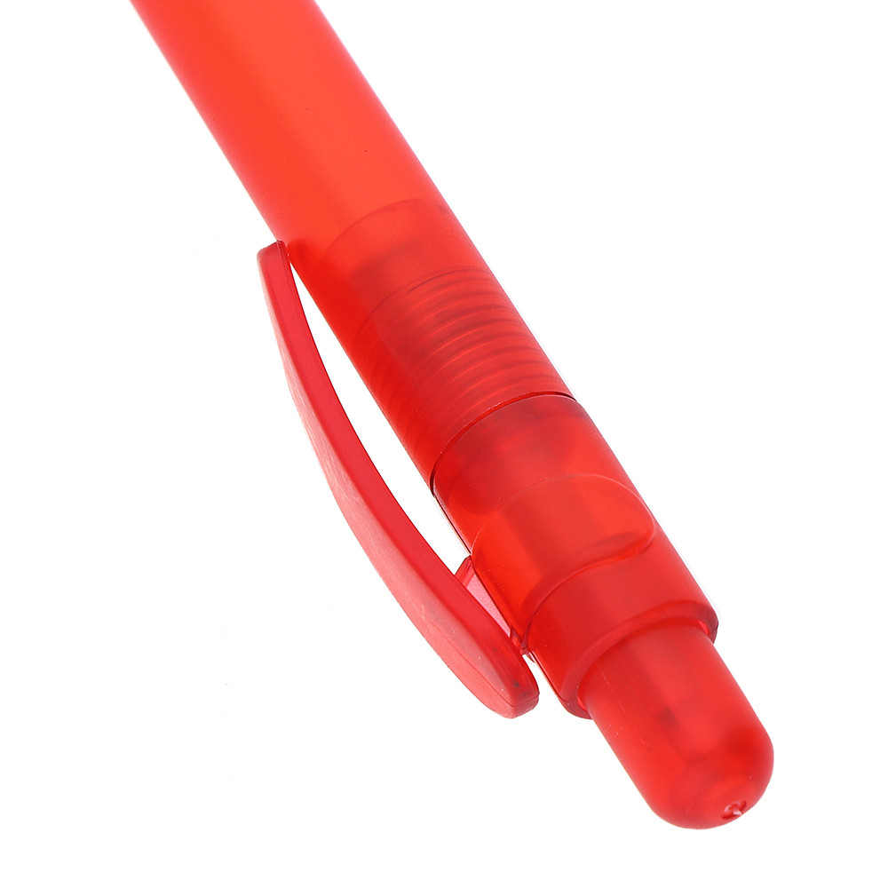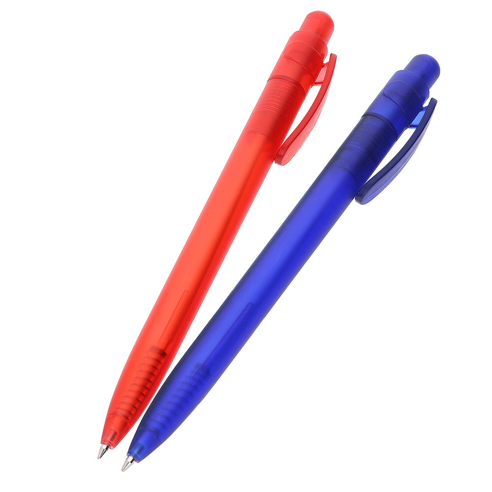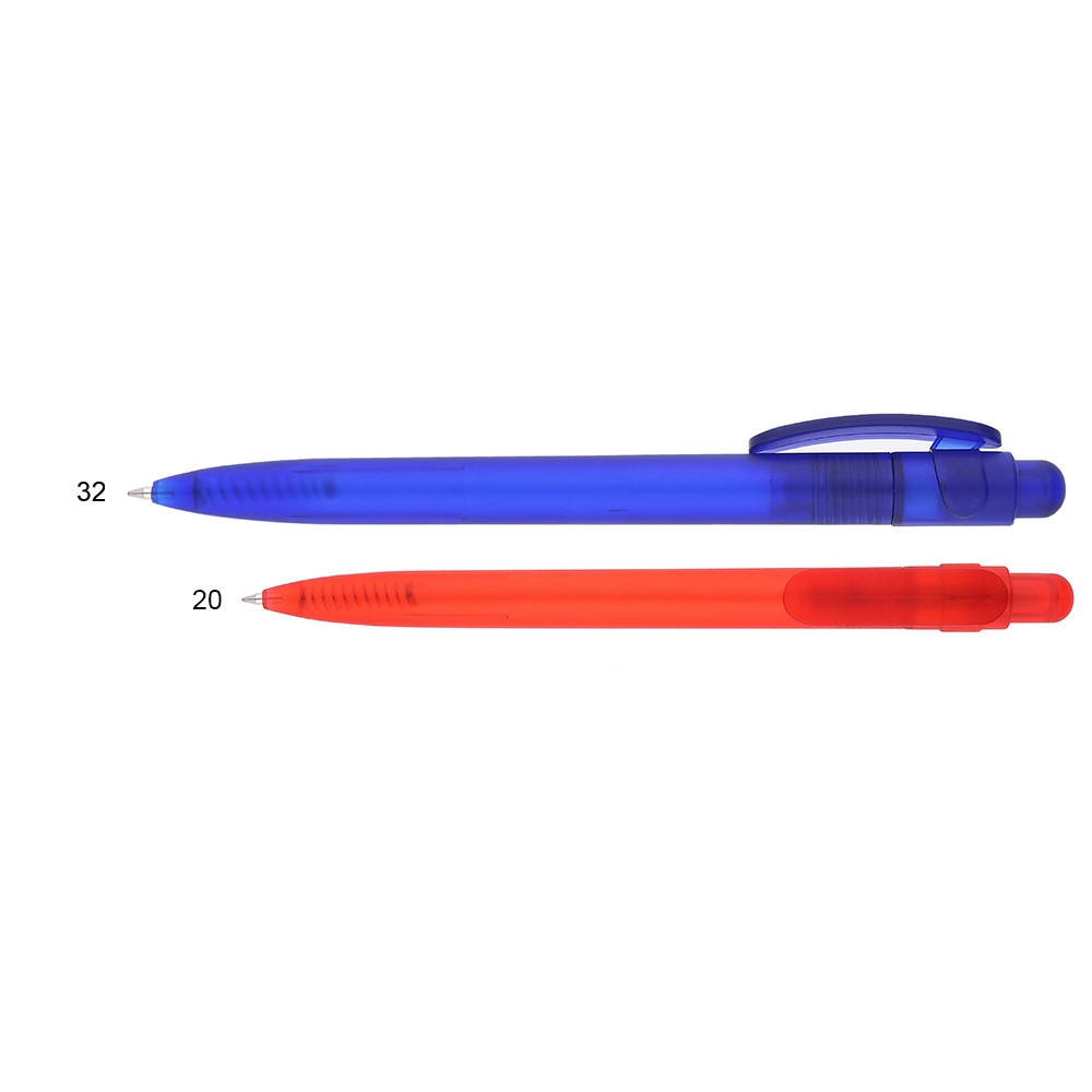 Transparentní plastové kuličkové pero v různých barevných odstínech.