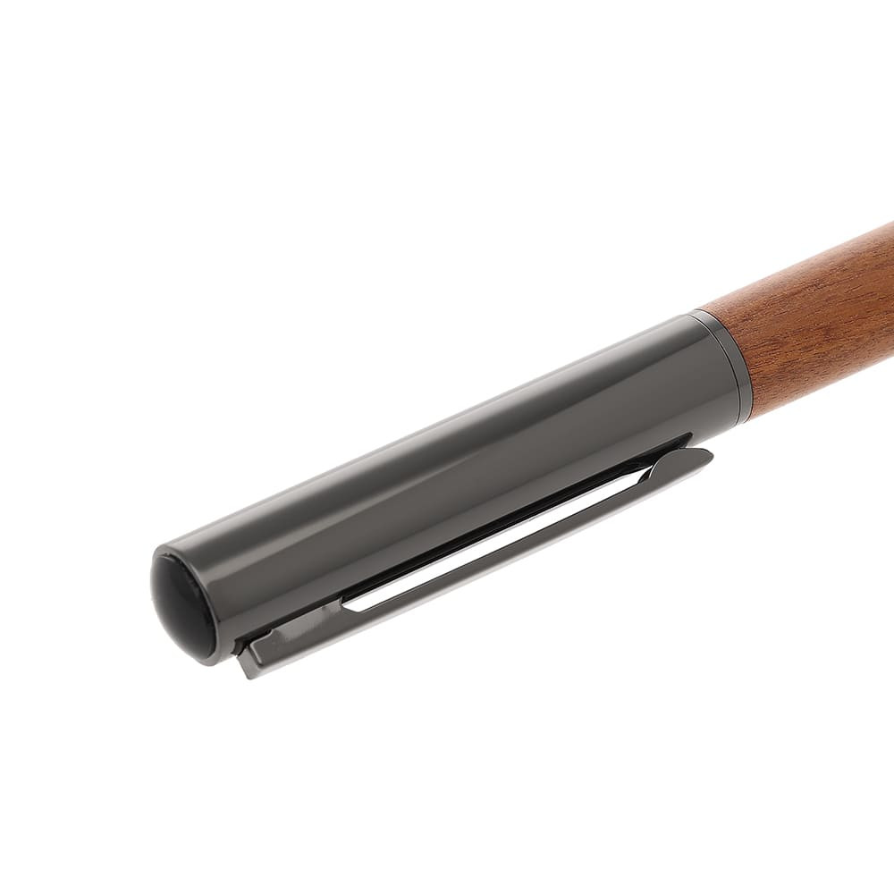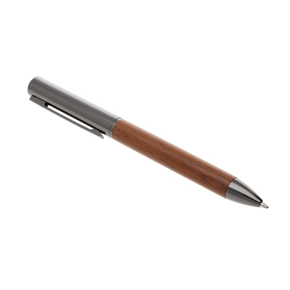 Stylové kuličkové pero vyrobené z kovu a kvalitního dřeva. Spojení lesklého černého kovového prvku a dřevěného těla dodává peru autentičnost a eleganci.