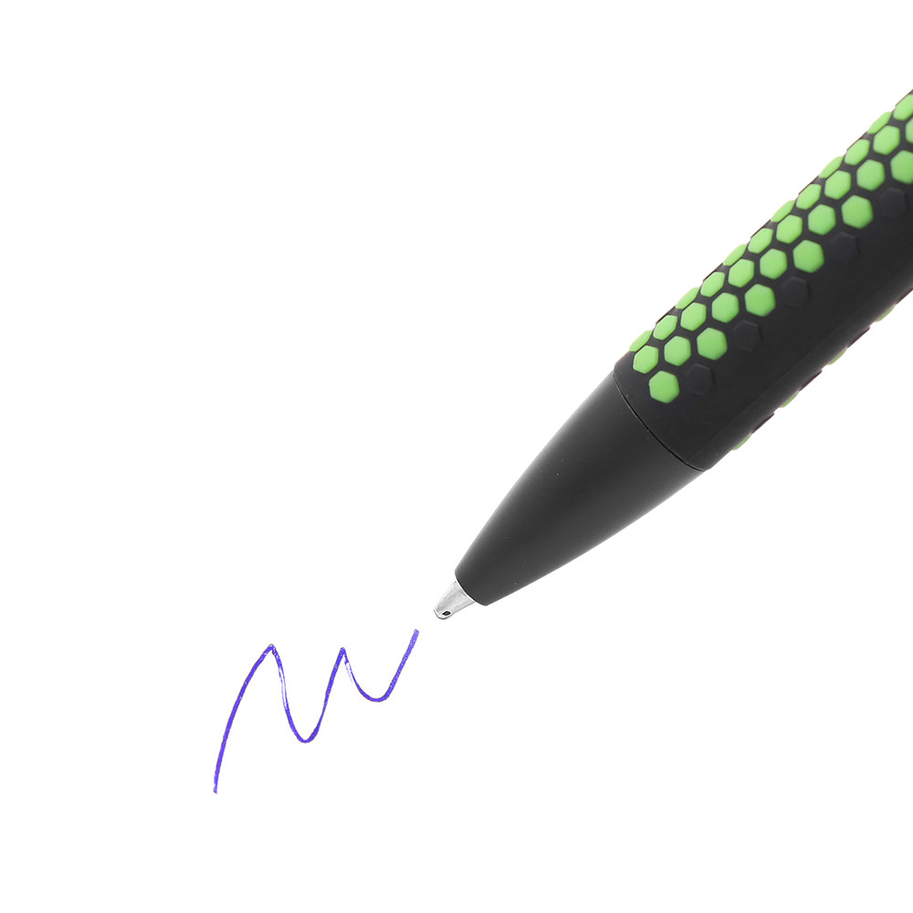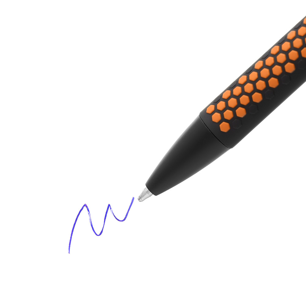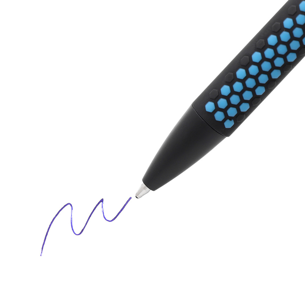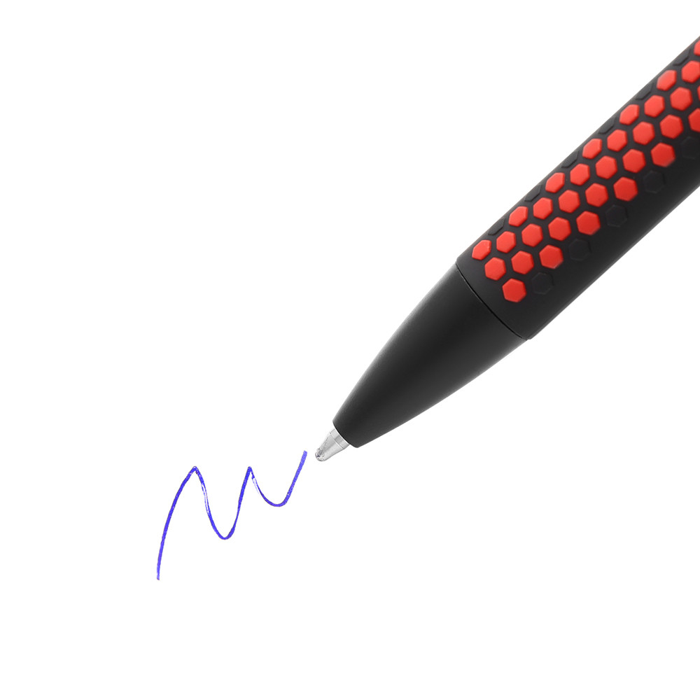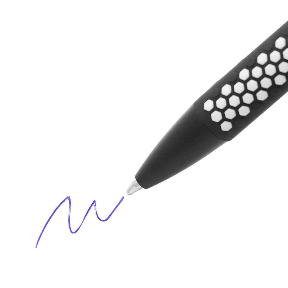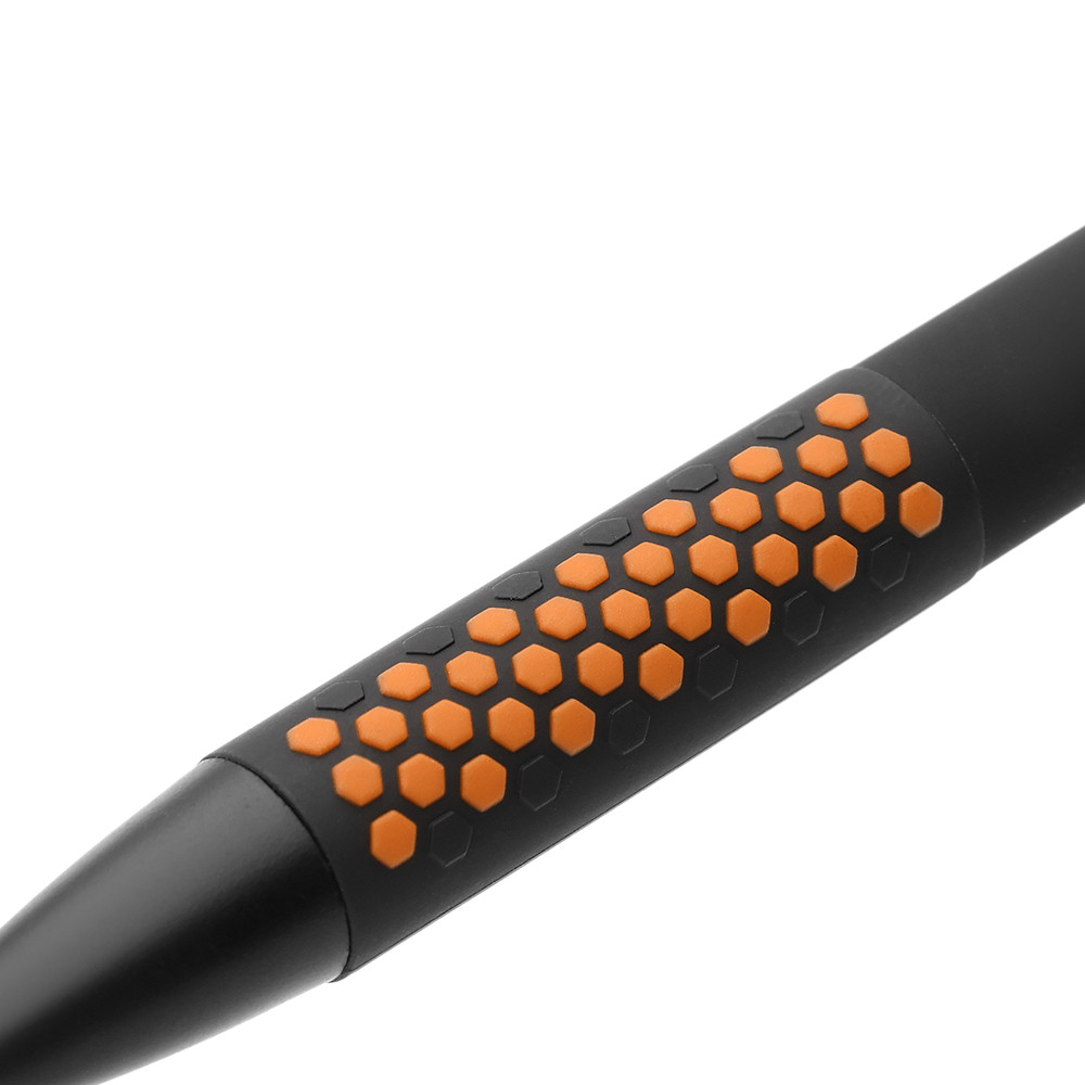 Černá moderní hliníková propiska s pogumovaným úchopem, matně černým klipem a stylusovým zakončením (touch-pad).