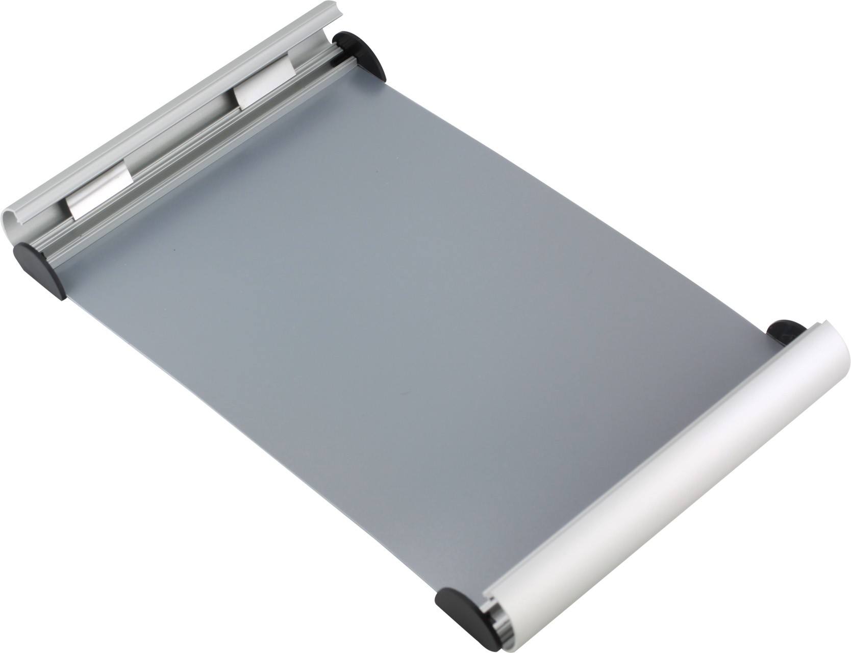 Metalowa tabliczka orientacyjna z łatwym systemem wymiany kartek, ochronną folią do przyklejenia na drzwi,szkło lub przymocowanie do ściany (w zestawie). Możliwość zamocowania pionowo i poziomo
