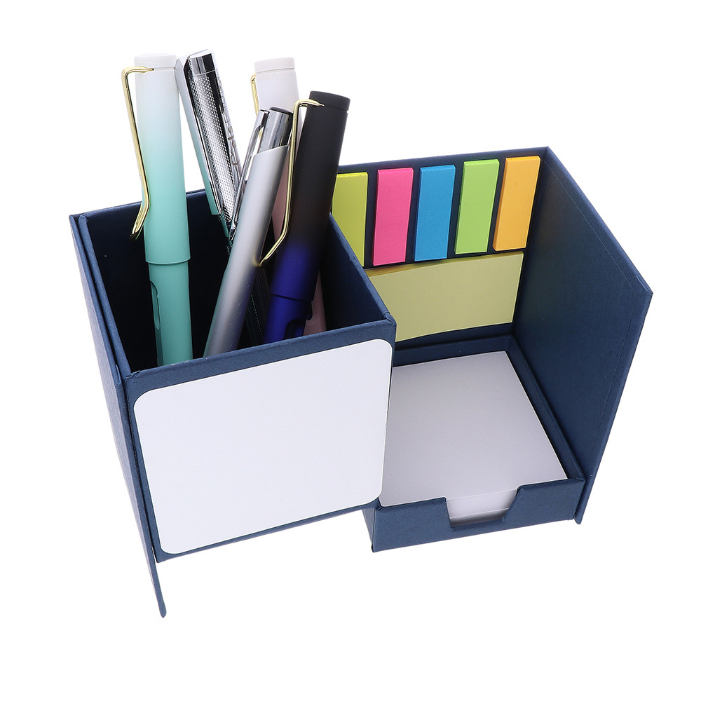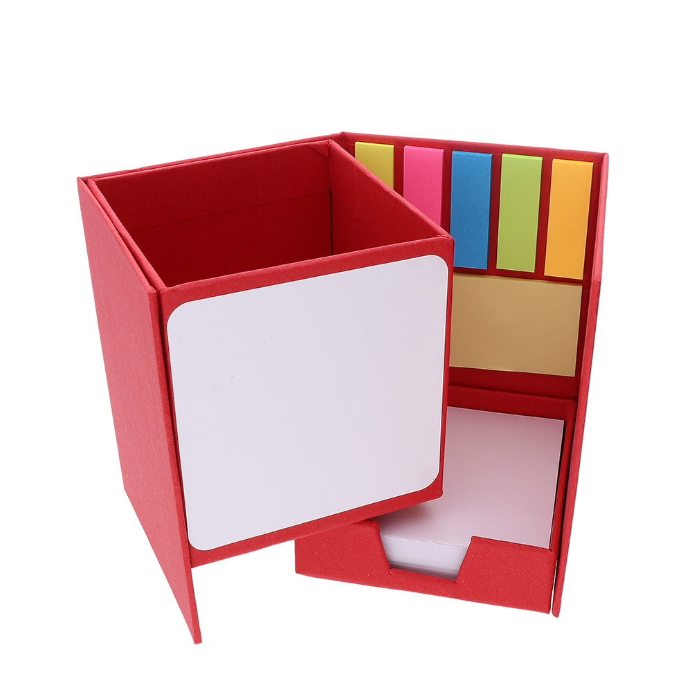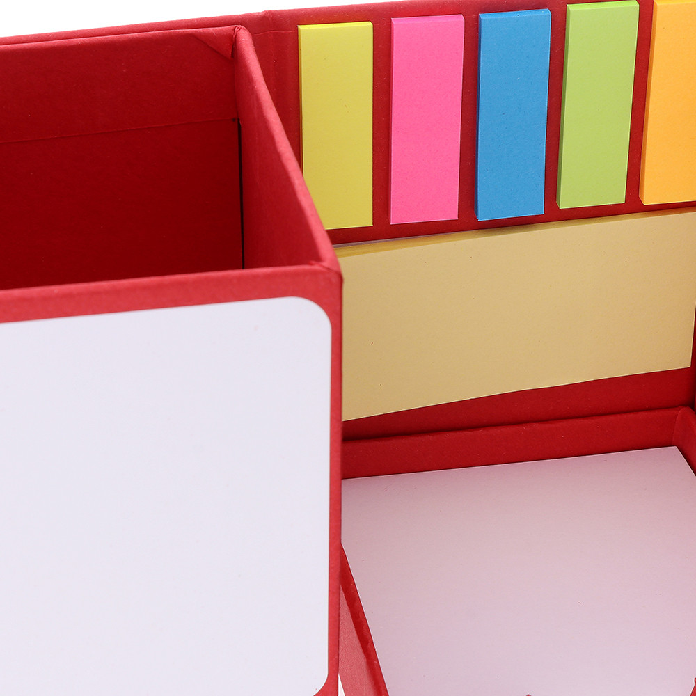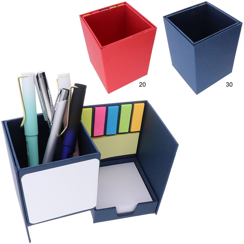 Praktyczny zestaw organizacyjny składający się z karteczek, kolorowych etykiet i stojaka na artykuły biurowe. Dla efektywnego planowania i sporządzania notatek posiada miejsce ze 170 luźno włożonymi kartkami, bloczek z 25 kartkami samoprzylepnymi oraz wymazywalną tabliczkę. Etykiety w pięciu różnych odcieniach kolorystycznych pomogą w lepszej orientacji w dokumentach.