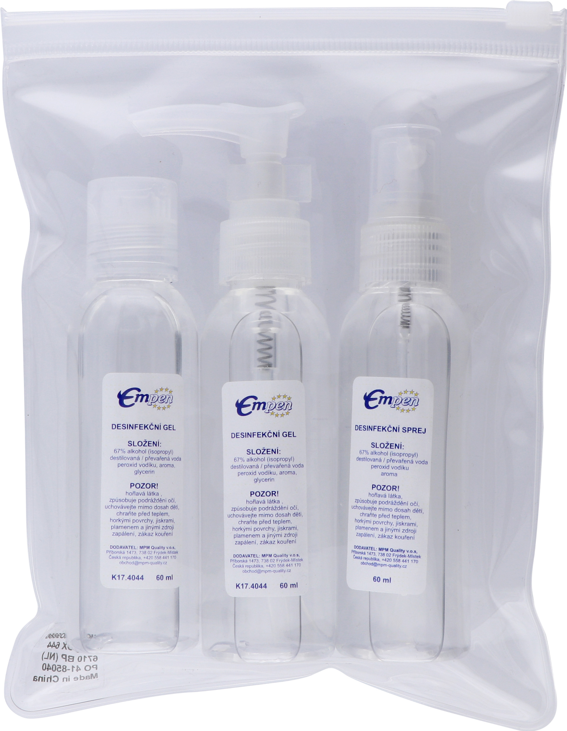 Set obsahuje 1x desinfekční sprej (60 ml), 2x glycerinový roztok (2x60 ml)