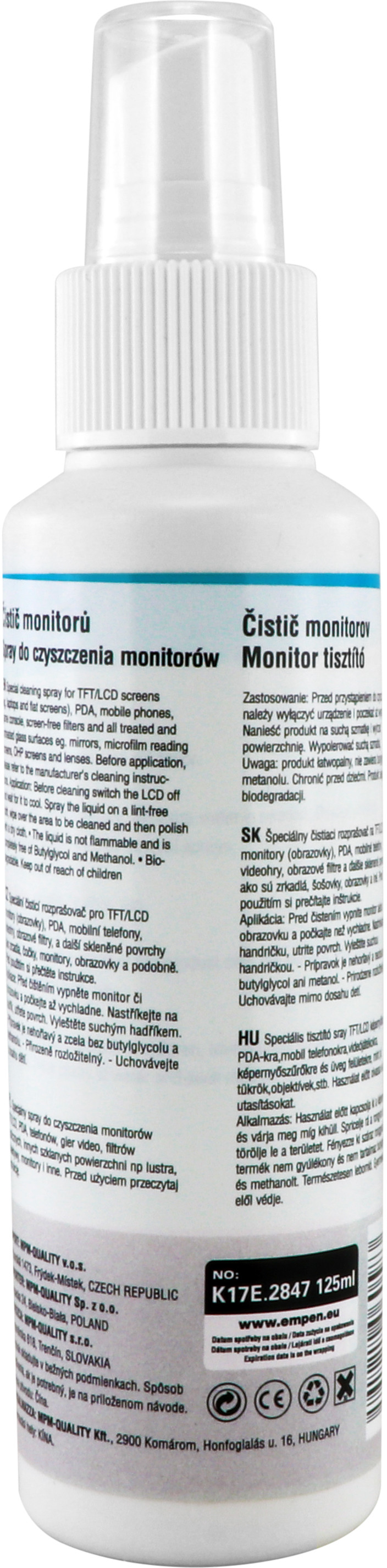 Viacúčelový antibakteriálny čistiaci prostriedok v spreji.