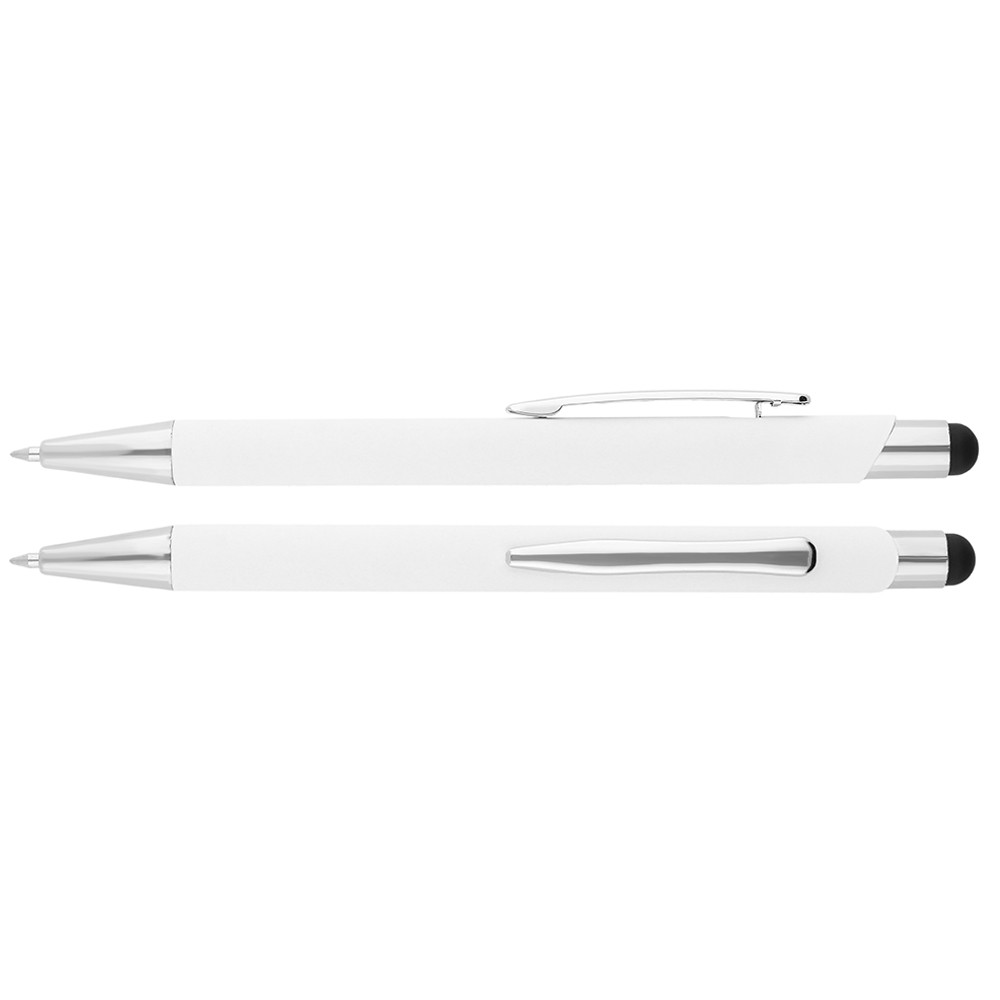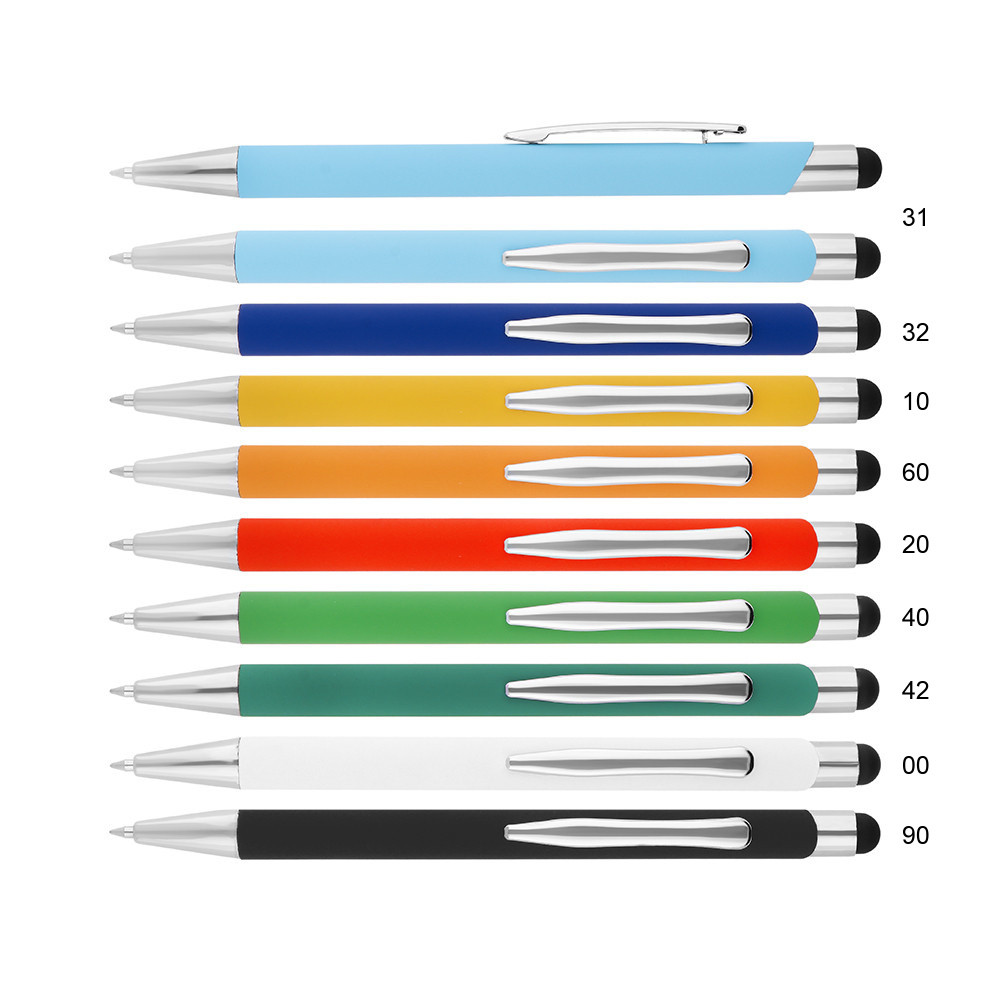 Hliníkové guľôčkové pero s chrómovanými časťami a stylusom na ovládanie dotykových zariadení.