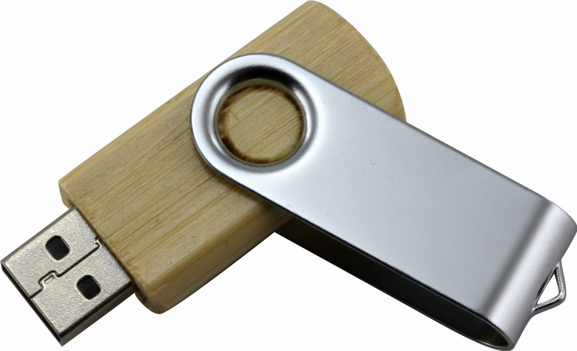 Drevený USB flash disk s otočnou kovovou krytkou, eco friendly