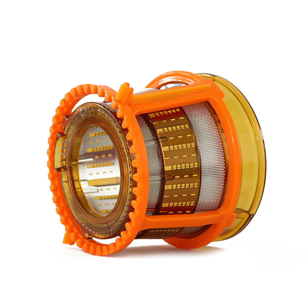 Součástí balení jsou: 2 nádoby na dužinu, filtr na šťávu, filtr na zmrzlinu a kartáč na čištění přístroje