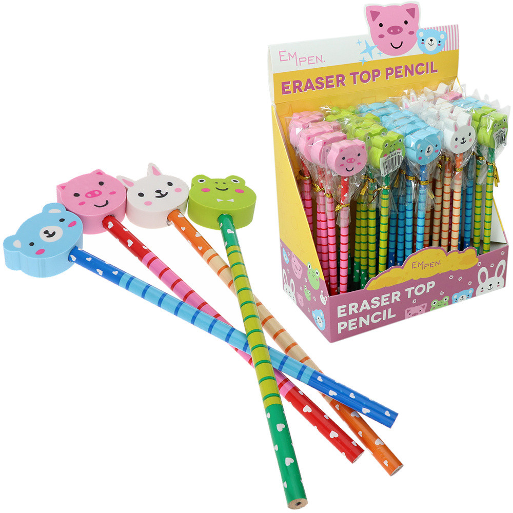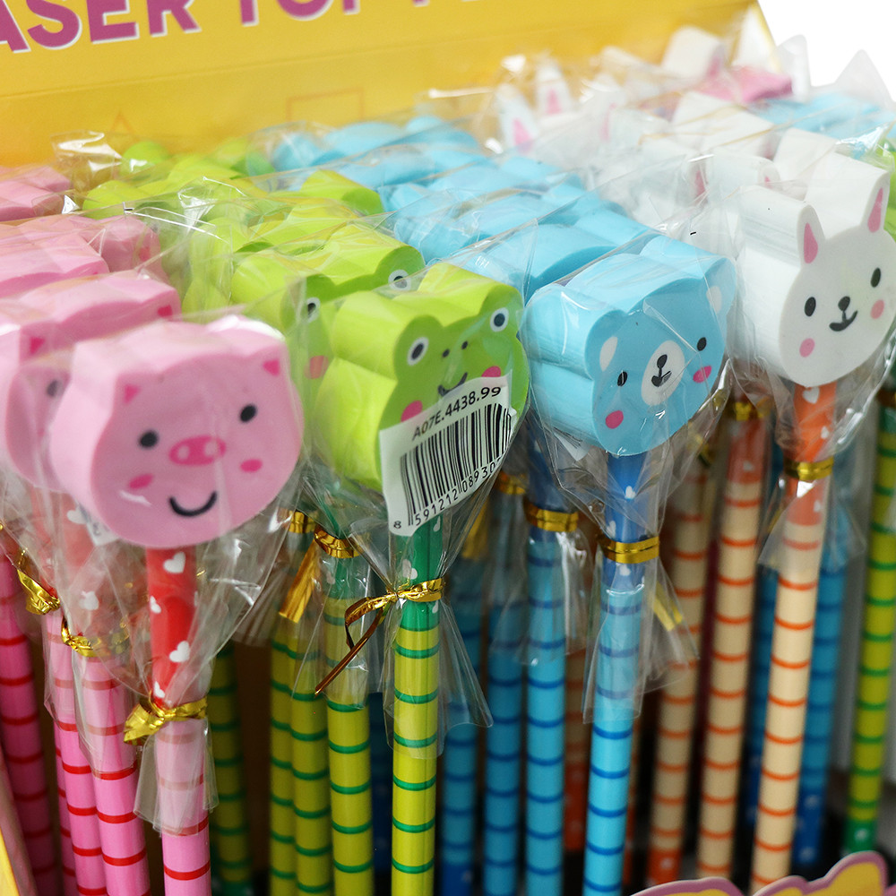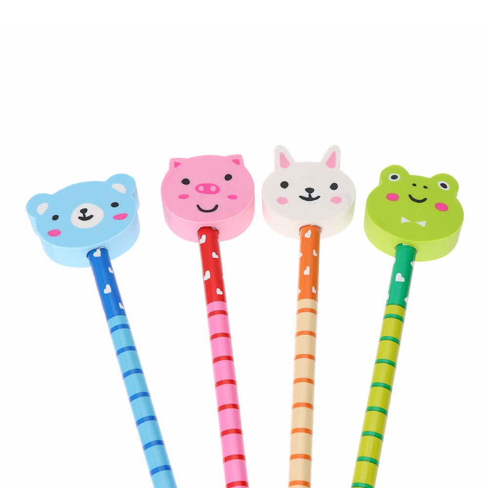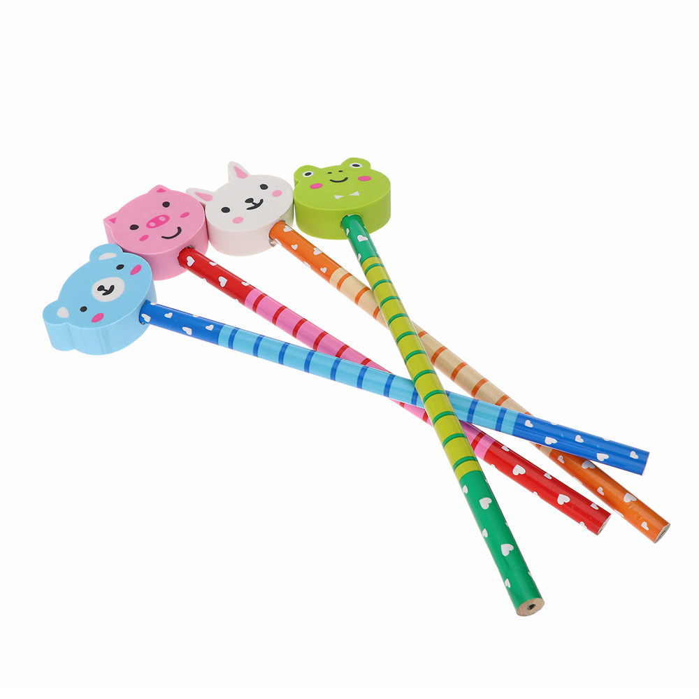 Dřevěné dětské tužky s gumou ve tvaru zvířatek.